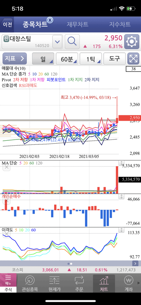 대창 스틸이면 자사주 매각 이슈로 상승한듯 한데, 차트상의 윗고리는 오랫동안 주가가 횡보한 만큼 투자자의 이익실현이 이루어졌기 때문으로 보입니다