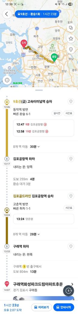네이버지도, 카카오맵, 또는 지하철 전용 앱(지하철종결자 등)에서 출발역–도착역 검색