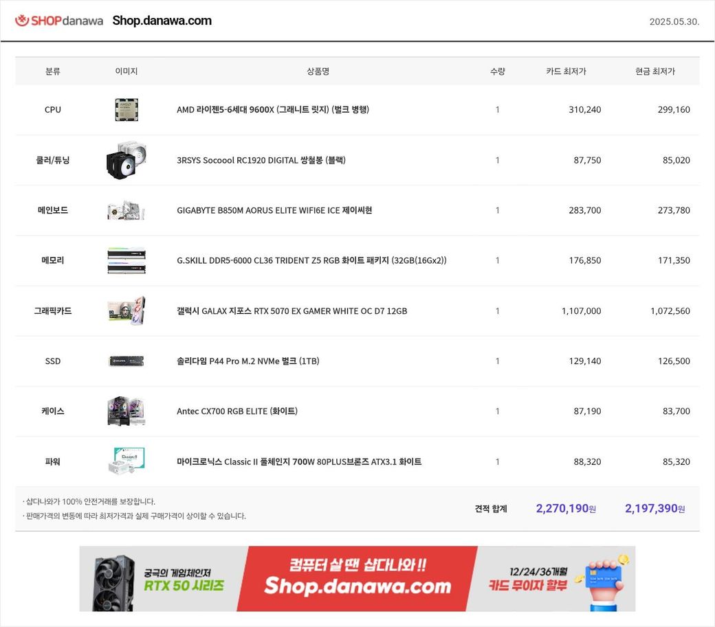배틀그라운드 QHD 화이트 컴퓨터 견적 이렇게 하면 될까요?