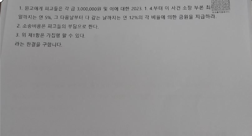 저를 포함 15명에게 각 300만원 배상하고 소송기간동안의 법정이자 5% 기타 등등 내용이었어요