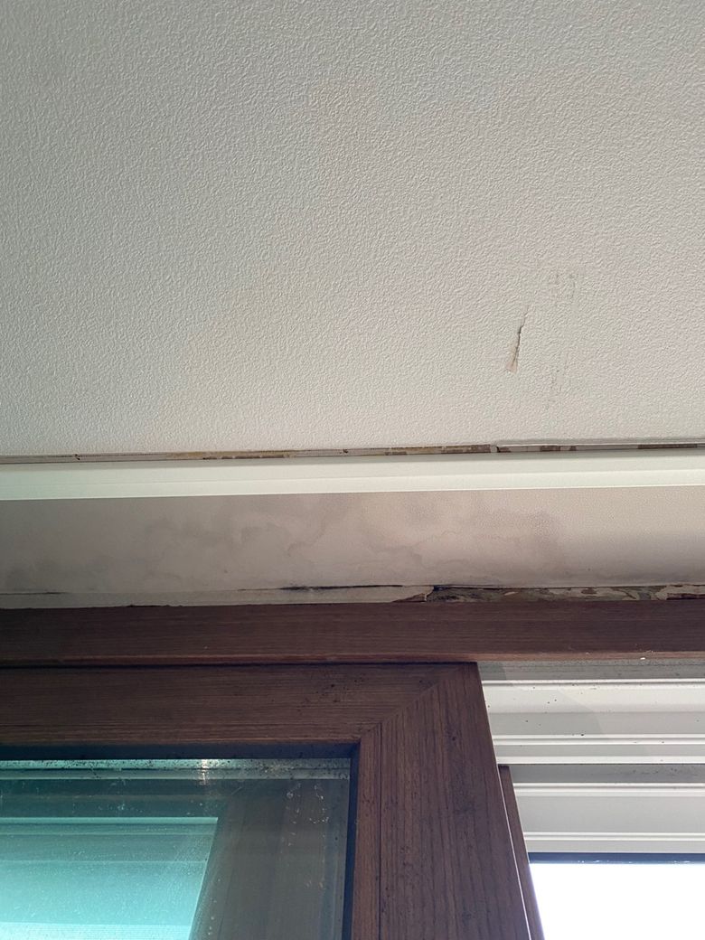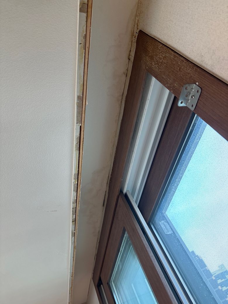 짐빼고나니, 옷으로 가려져 안보였던 창틀주변 누수 흔적이 발견되었습니다.
