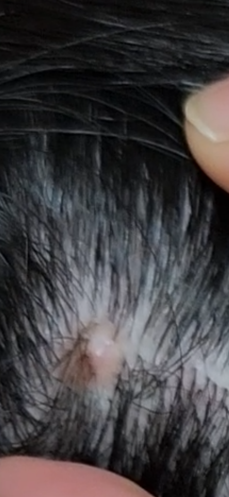 두피의 모낭염 또는 표피낭종 등의 가능성이 있습니다.