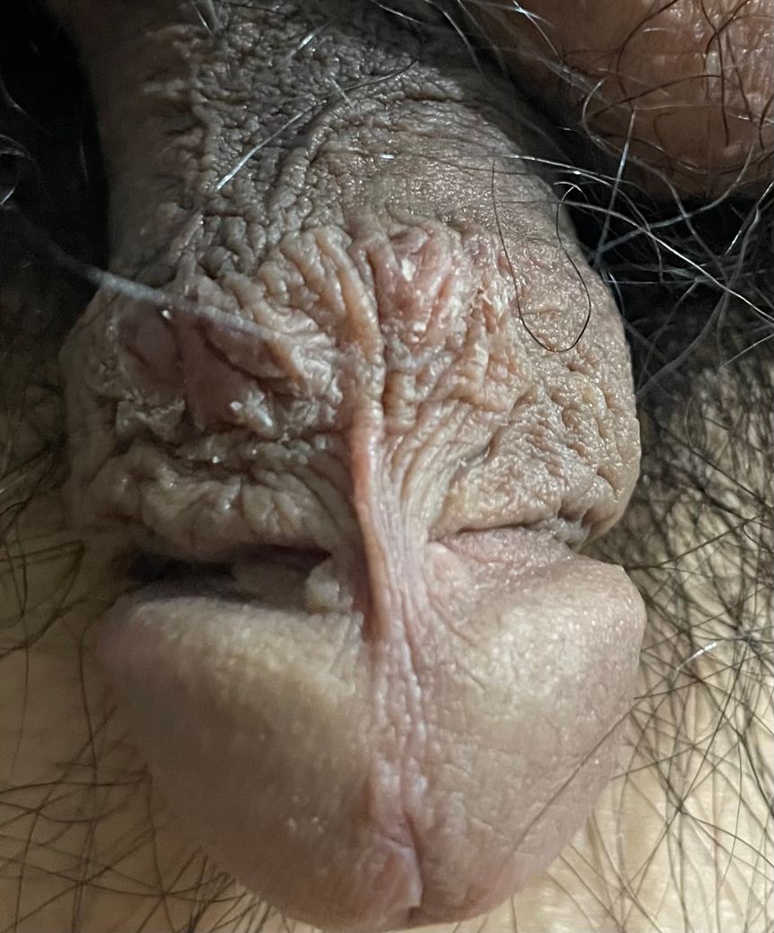 사진과 같이 귀두 아래부분이 간지러움 및 각질이 생기고 생긴 것도 일반적이지 않아서 성병일지 걱정되네여 답변 부탁드립니다!!!