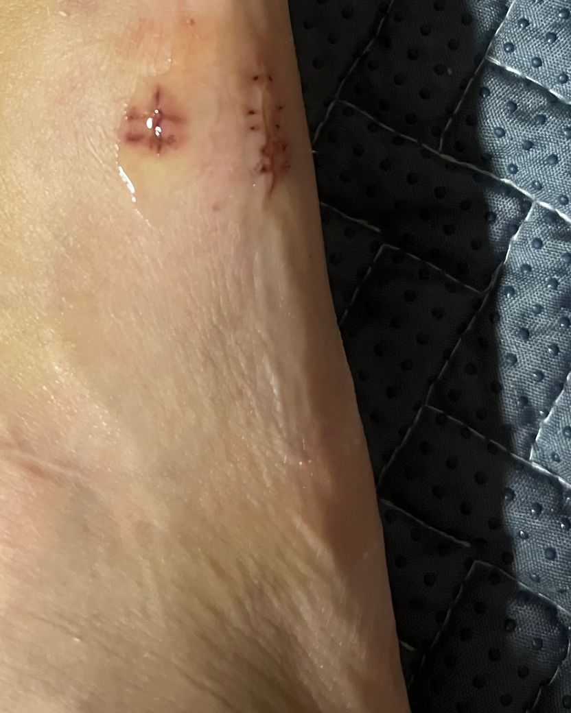 새끼발가락쪽 발등 뼈 골절로 수술하였습니다.