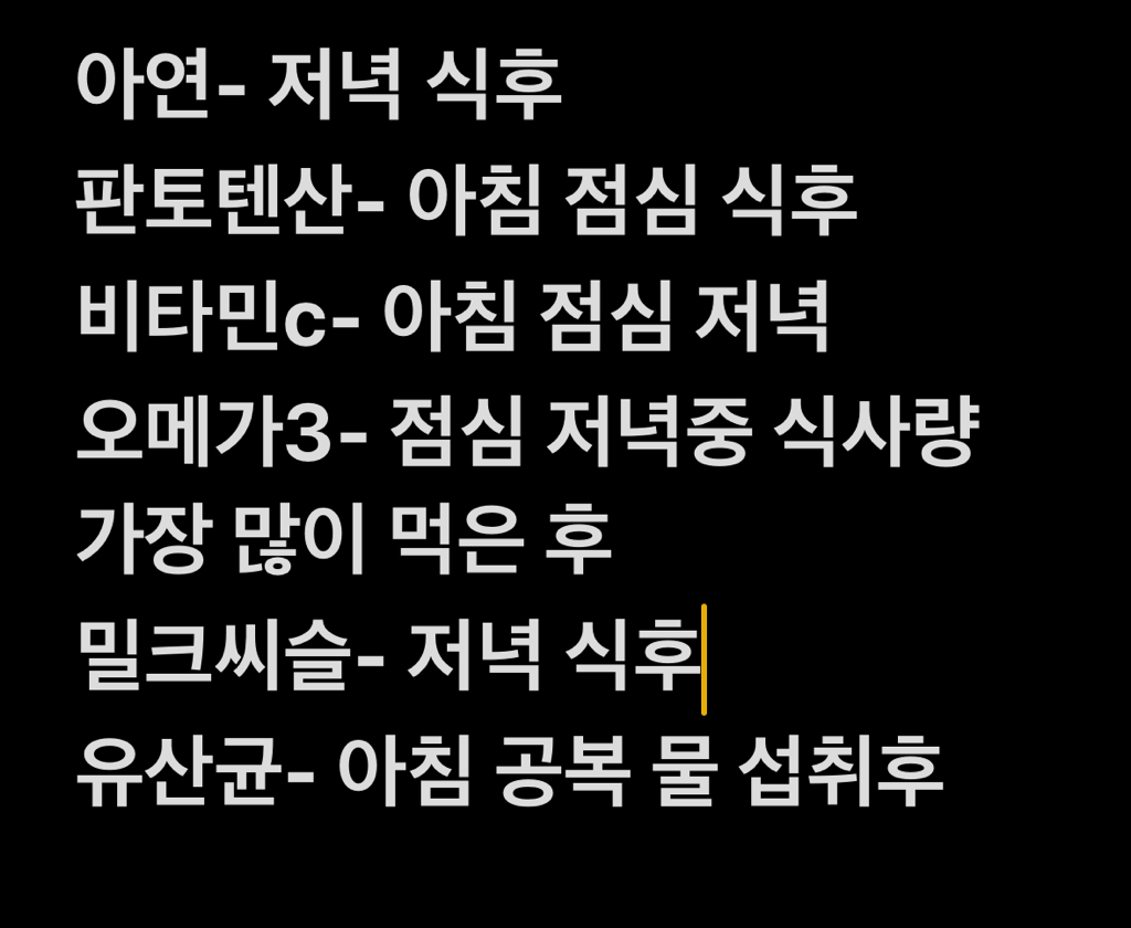 저녁식후 ▶ 아연, 판토텐산, 비타민C, 오메가3, 밀크시슬
