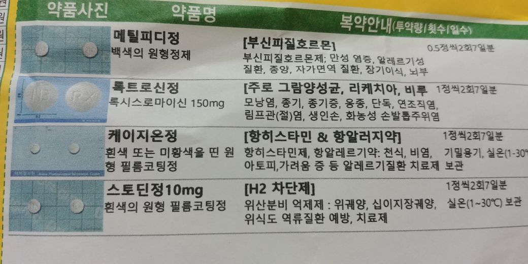 그리고 속쓰림을 잡아줄 수 있는 스토딘 정이 처방되어있네요.