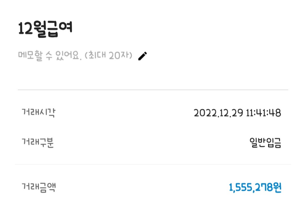12월 29일 월급 날 메일로 발송 된 급여 명세서와 통장에 입금 된 내역에서 차이가 발생