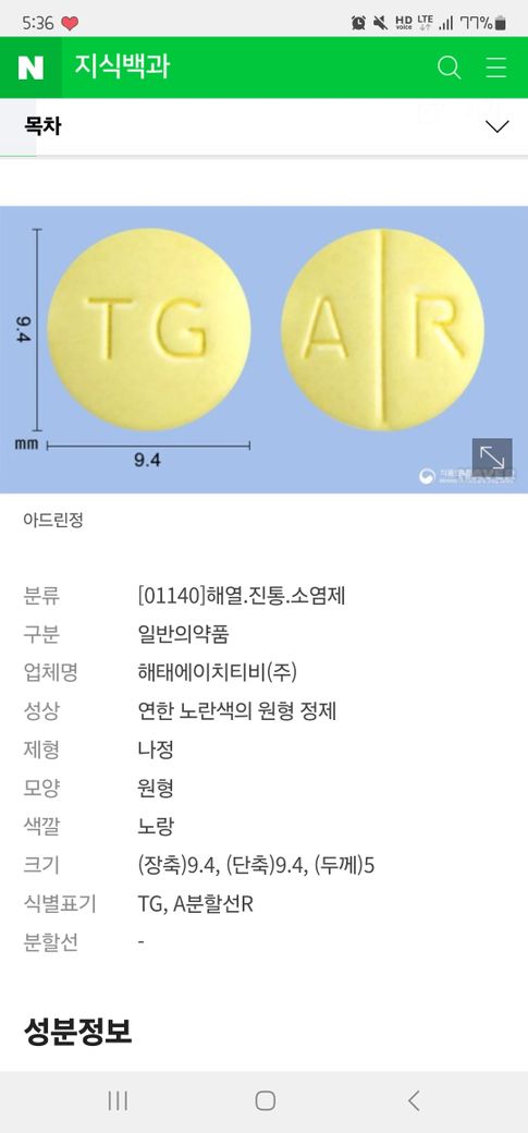 사진으로 보여주신 아드린정에도 아세트아미노펜 성분이 들어있긴 하지만,