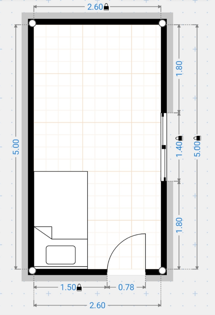 제가 5m*2.6m 크기의 방을 가지고있는데 이곳을 좀 꾸미고 싶습니다. 그런데 대략적인 원하는 방향은 알겠는데 가구 배치를 어떻게 할지 모르겠습니다. 도와주셔요...!
