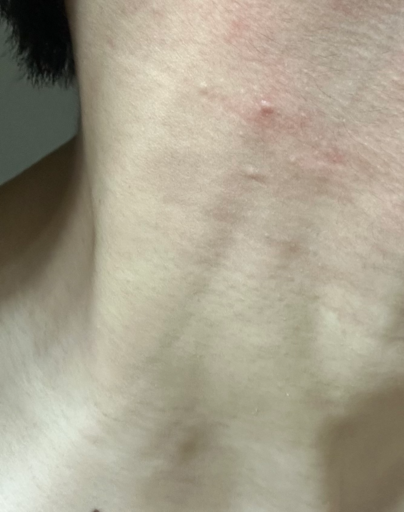 면포가 동반된 것으로 봐서 여드름으로 추정이 됩니다. 중간에 붉은 부분은 화농성 여드름으로 보이며 따가운 증상이 있을 수 있습니다. 여드름 치료를 지속적으로 잘 받는 것을 권유드립니다.