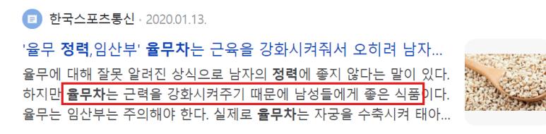 안녕하세여. 우선 그것은 잘못된 정보로 율무차는 근력을 강화시켜주는 성분이 많아 오히려 남성들에게