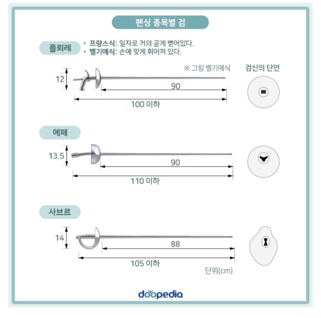말씀하신 대로 펜싱의 종목에 따라 칼의 길이와 무게에도 차이가 있습니다.