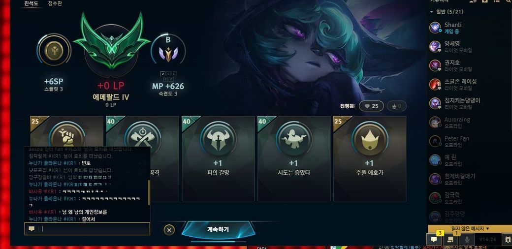 그래서 제가 실명언급하지말라해도 계속 하고 1대1 대화창에서 저에게 부모님욕을 했습니다.