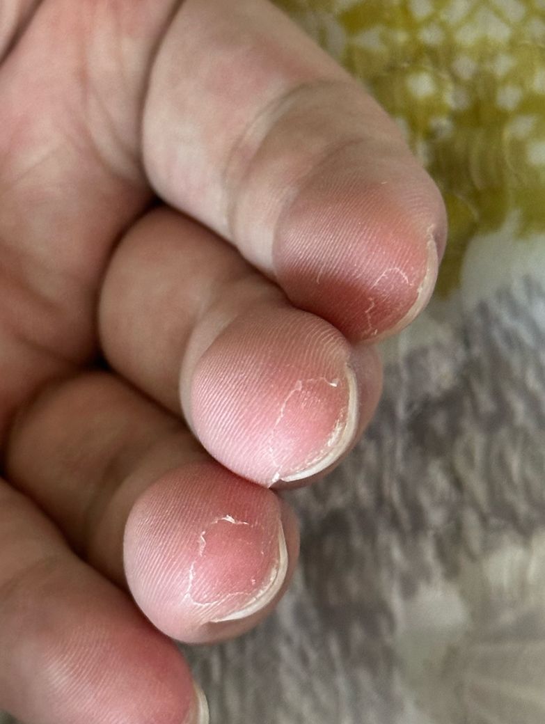 한 손가락 끝이 벗겨지더니 어느순간 확인하니 손가락 끝이 4개정도 껍질이 벗겨진걸 확인했습니다. 껍질은 두껍거나 하지않고 얇은 껍질이 허물 벗겨지듯이 계속 벗겨집니다. 발가락도 비슷하게 벗겨진거같아 사진으로 첨부했습니다..원인이 뭘까요 피부병은 없습니다