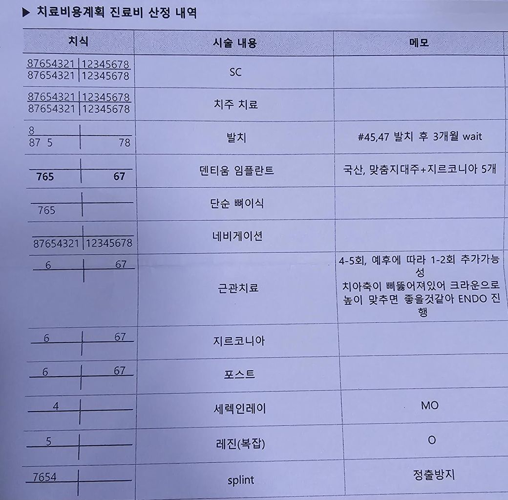 그동안 미루어 왔던 치과 치료를 할 생각이라 여러군데 치과를 다니며 견적을 받아 봤습니다.