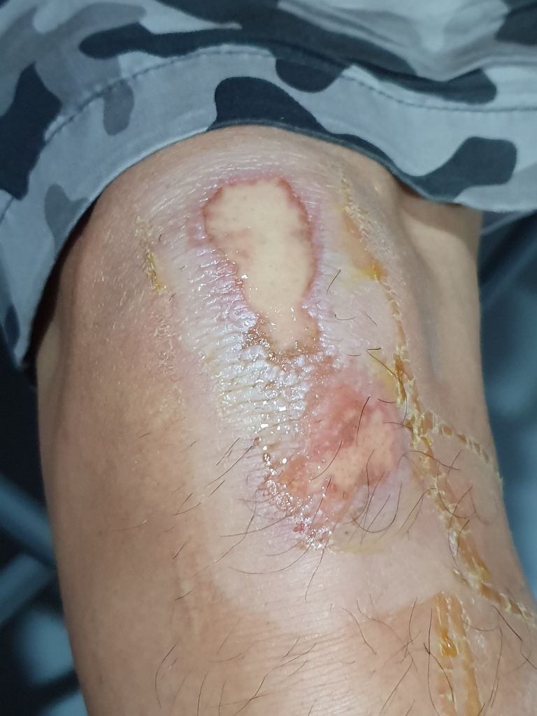 회복의 과정으로 보이며, 습윤드레싱은 한동안 지속해야할 것으로 보이니 상처관리를 잘 하시는 것을 권유 드립니다.