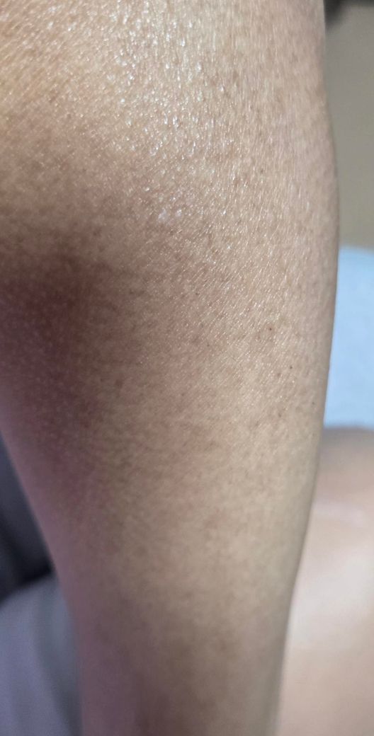 세 번째는 어루러기(말라세지아 균 감염)입니다. 보통 목, 어깨, 가슴에 잘 생기며 얼룩처럼 색이 달라집니다. 다만 어루러기는 대개 밝은 반점이나 미세한 각질이 동반되는 경우가 많고, 사진에서는 전형적인 양상은 뚜렷하지 않습니다.