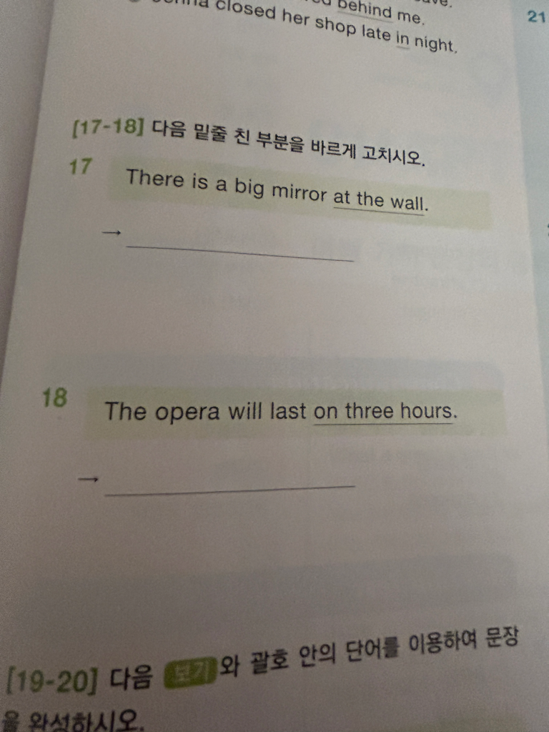 하.. 아래 문제를 도저히 모르겠어요..전치사와 접속사 배우는중입니다. 아래 사진을 보고 풀어주세요...ㅜㅜ!! 간단히 풀이도 함께 참조 부탁드립니다아ㅜㅠ17 18 11
