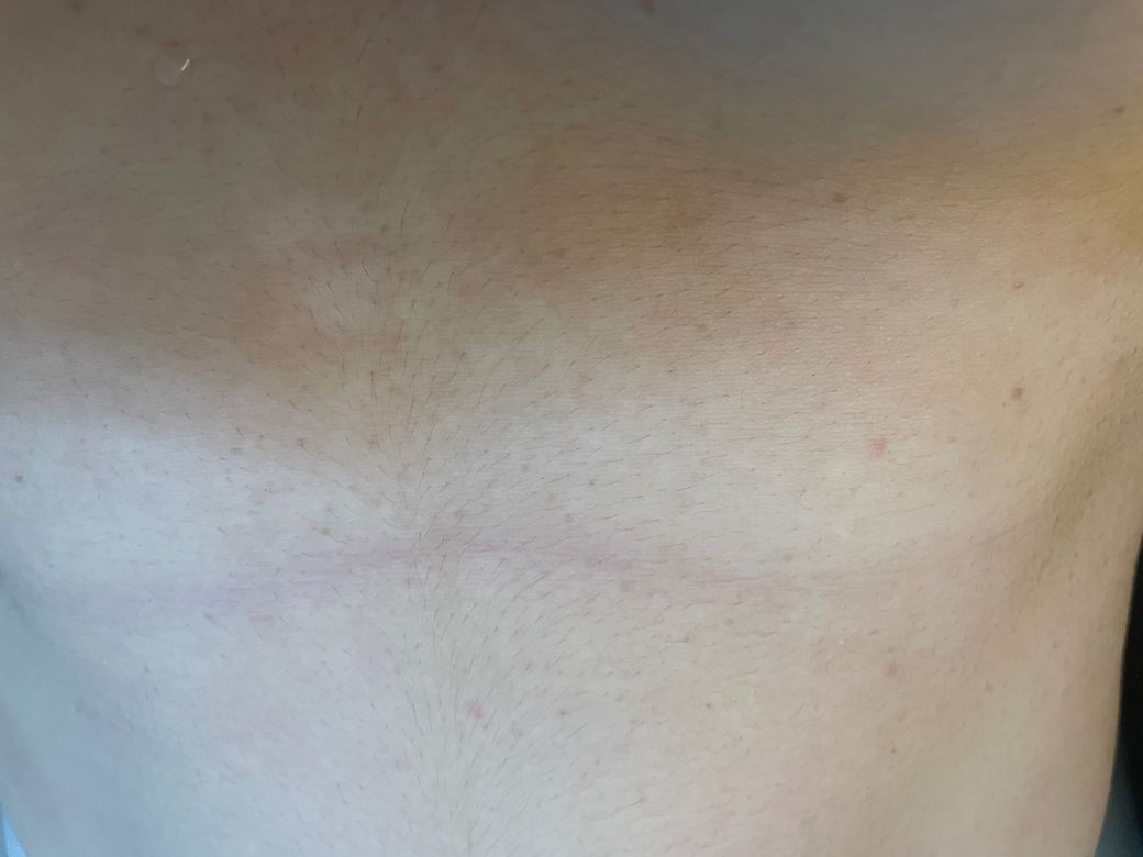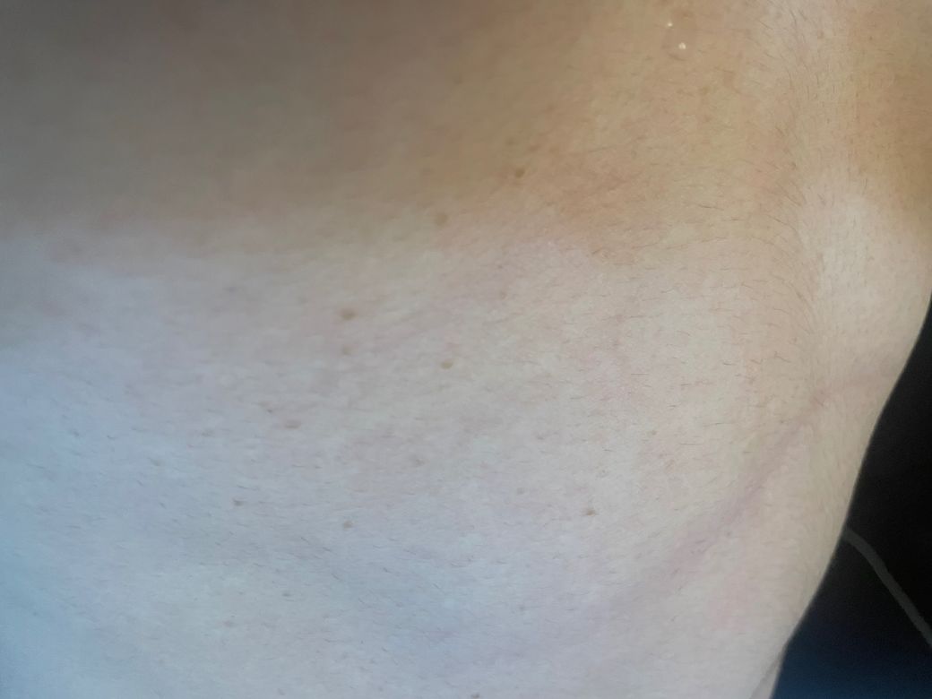 어느날 갑자기 배 왼쪽에 오돌토톨한 연갈색 점이 생기더니 점차 번져가면서 배 전체에 생겼습니다