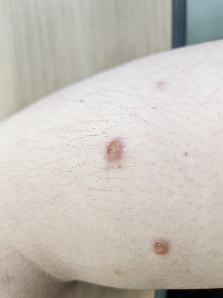 피부에 양진이 생겨 긁으면 저런 가피가 생길 수 있습니다.