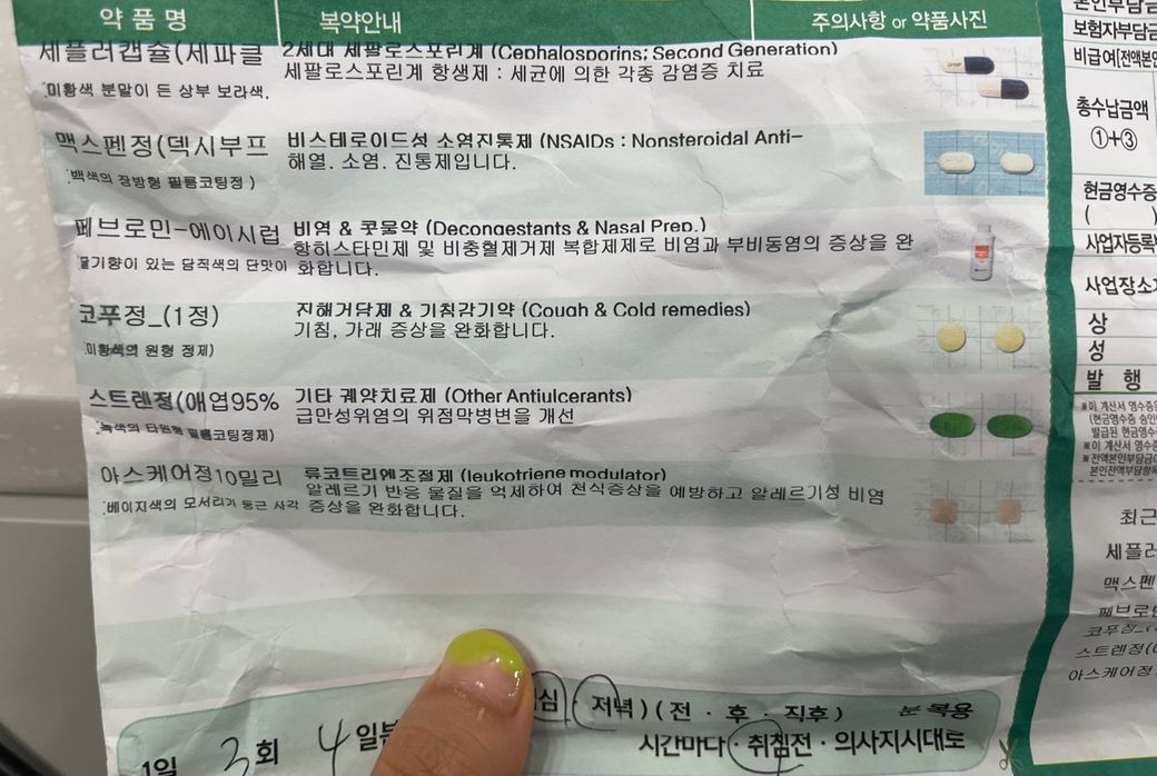 처방받은 약 중 맥스펜정은 탁센레이디와 같은 계열이기때문에 동시에 복용하시면 안됩니다.