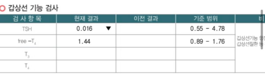 환자분의 경우 TSH 수치가 많이 낮기 때문에 갑상선항진증의 가능성이 있습니다