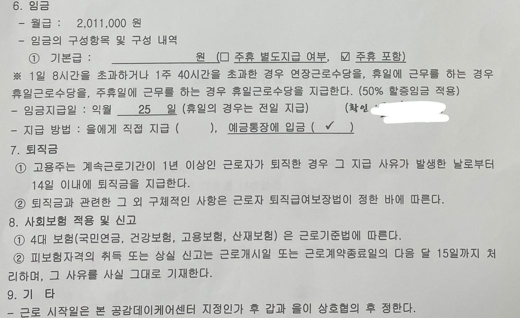 근로계약서 작성을했는데 이상해서 물어봅니다