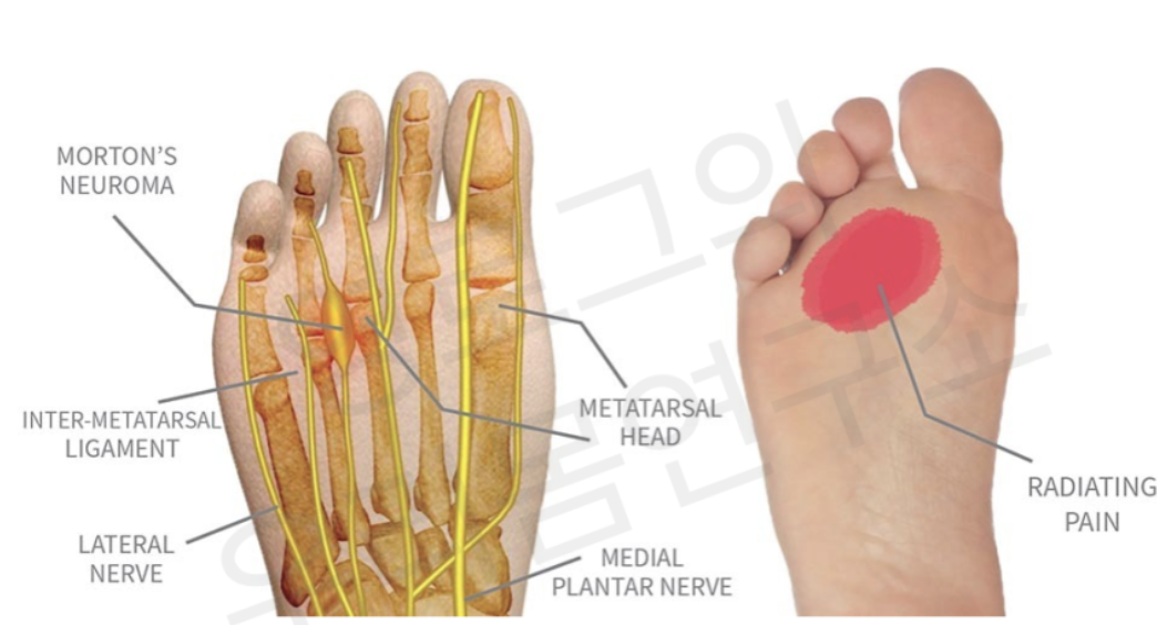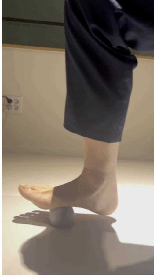 만약 발바닥 앞쪽 부위가 아프다면, 지간신경종일 가능성도 있기 때문에 아래사진처럼 발바닥 근막 이완과 장딴지근을 이완해주세요.