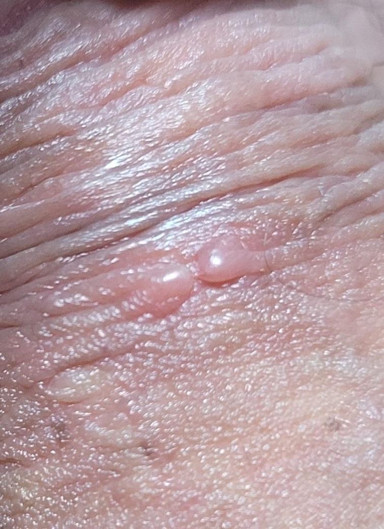 아무생각없이 성기를 만졌는데 통증이 느껴져 깜짝놀라 확인햇더니 물집이 두 개 잡혀있네요. 만지면 통증이 아주 살짝 있는정도고 가만히 있으면 아무것도 느껴지진않아요.