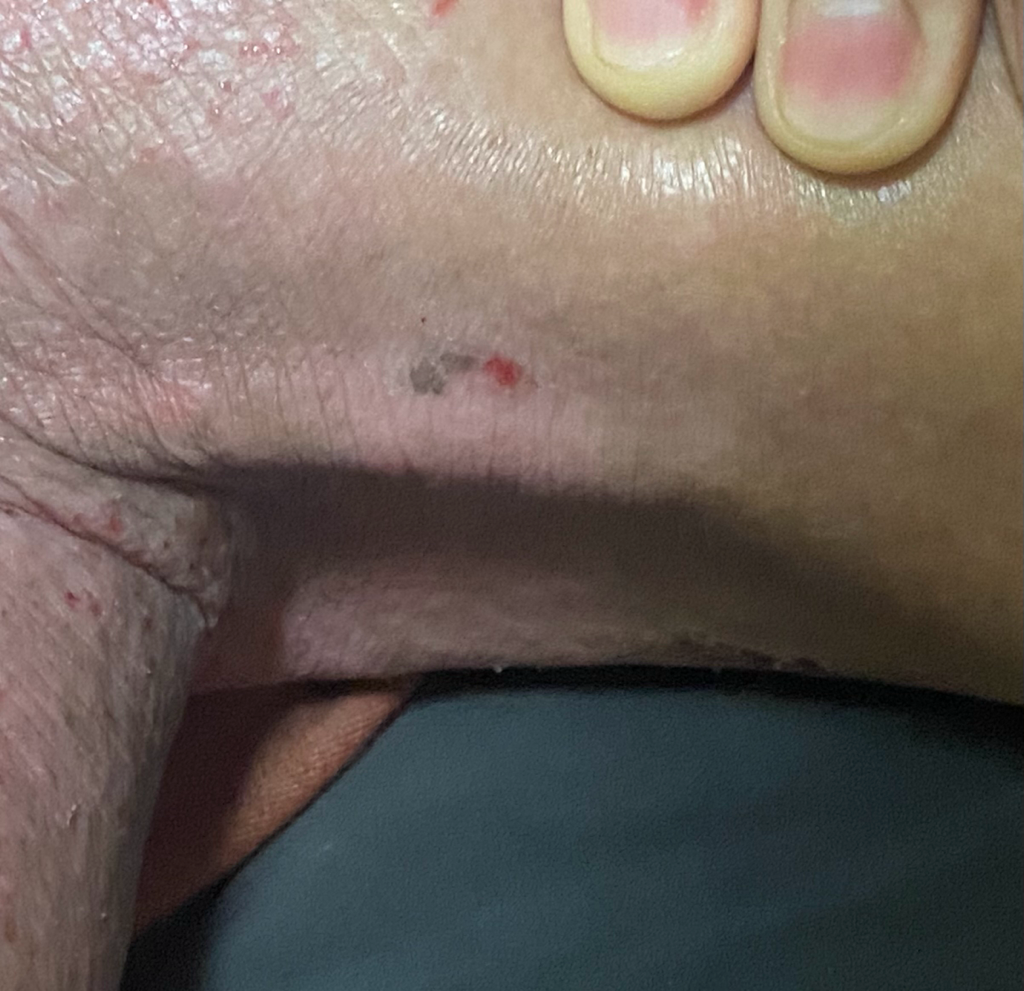 (옆의 빨간 점은 최근 긁어서 생긴 상처입니다. 점 부위도 예전에 상처가 있다 나았던 것 같습니다.)