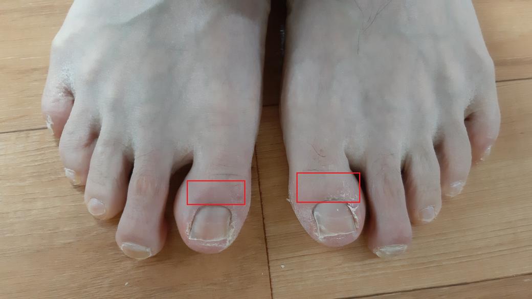 위 그림을 봤을 때, 엄지발가락의 발톱 안쪽 끝부분으로부터