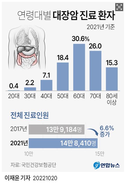 단지 환자분 연령대는 아래에서 알 수 있는 것처럼 대장암의 가능성이 ZERO는 아니지만
