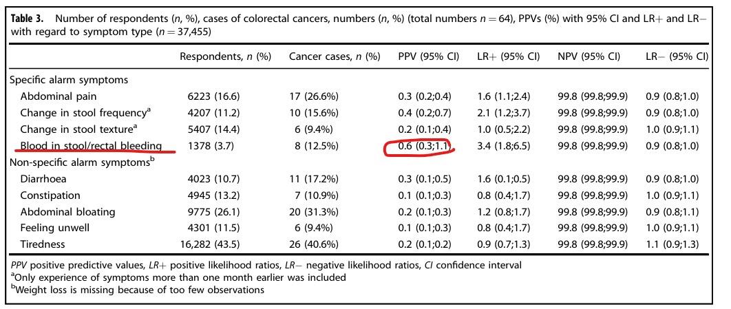 Predictive values of colorectal cancer alarm symptoms in the general population: a nationwide cohort study (British Journal of Cancer (2019) 120:595–600)