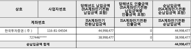 그럼 위 자료에서 isa계좌 만료로 퇴직연금에 이전된 금액이 38,998,477원이고