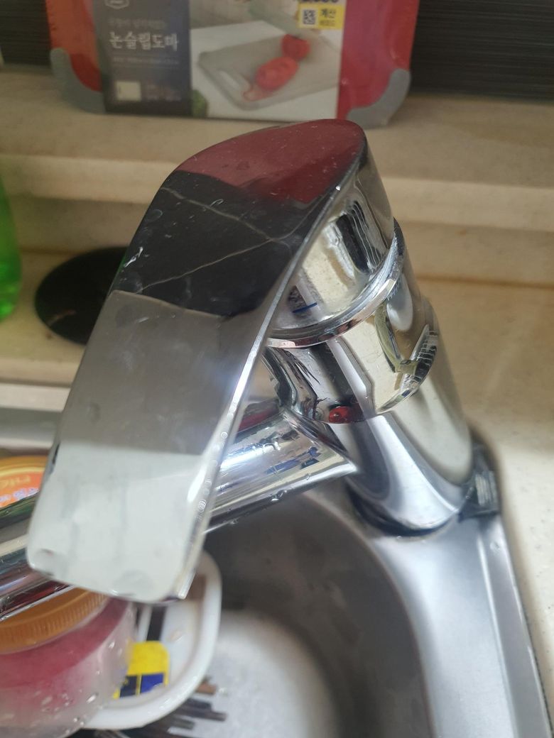 씽크대 설거지할때 물 트는것이 기울어져 있어요..