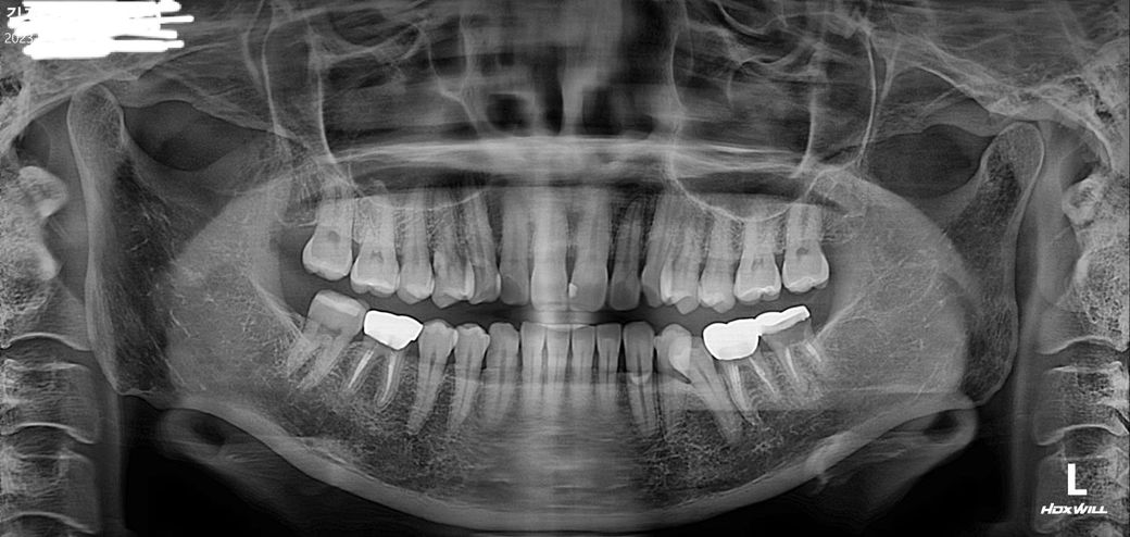 크라운치료후 파노라마사진상 비어보이는부분