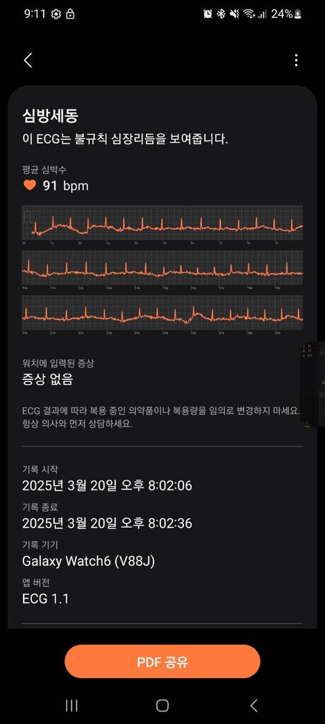 컨디션이 안좋아서 갤 워치로 측정해보니 심방세동으로 나오더라구요.. 물론 저 한번 이후로는 안나오긴했는데 혹시 해당 자료로 진료받아보는게 좋을까요??