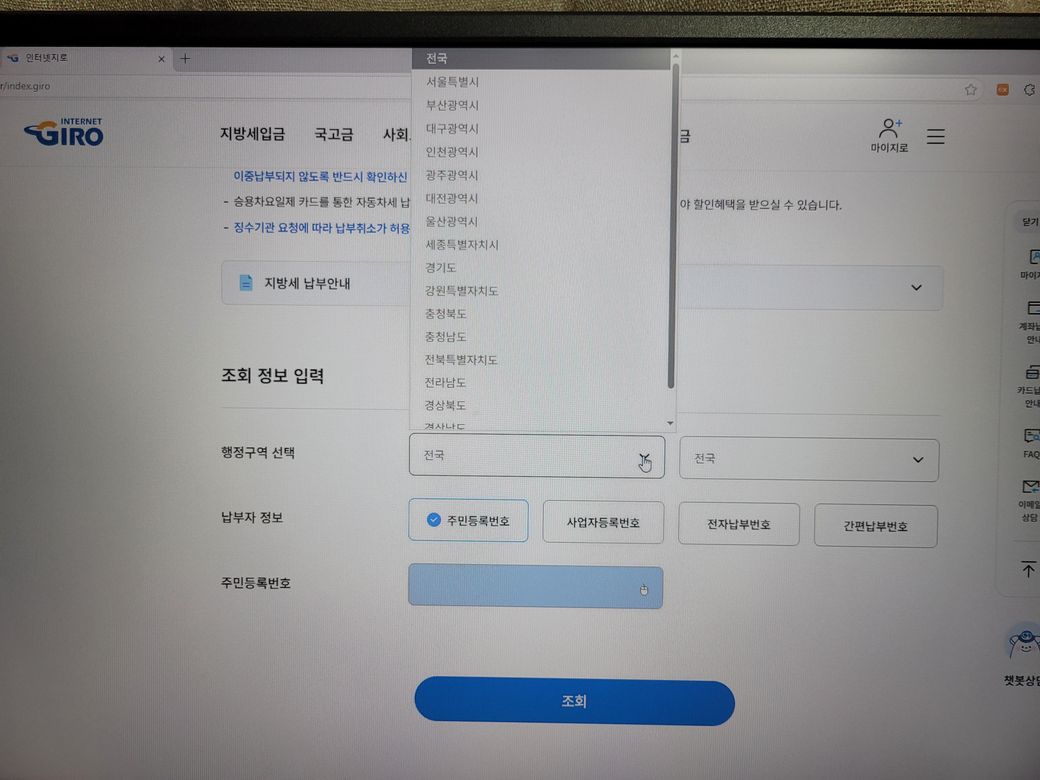 이 화면에서 행정구역 선택하려고 마우스 올리면 행정구역 뜬게 사라지고해서 마우스 클릭이 안됩니다 뭐가 문제인지요??어떻게 해결해야하나요?
