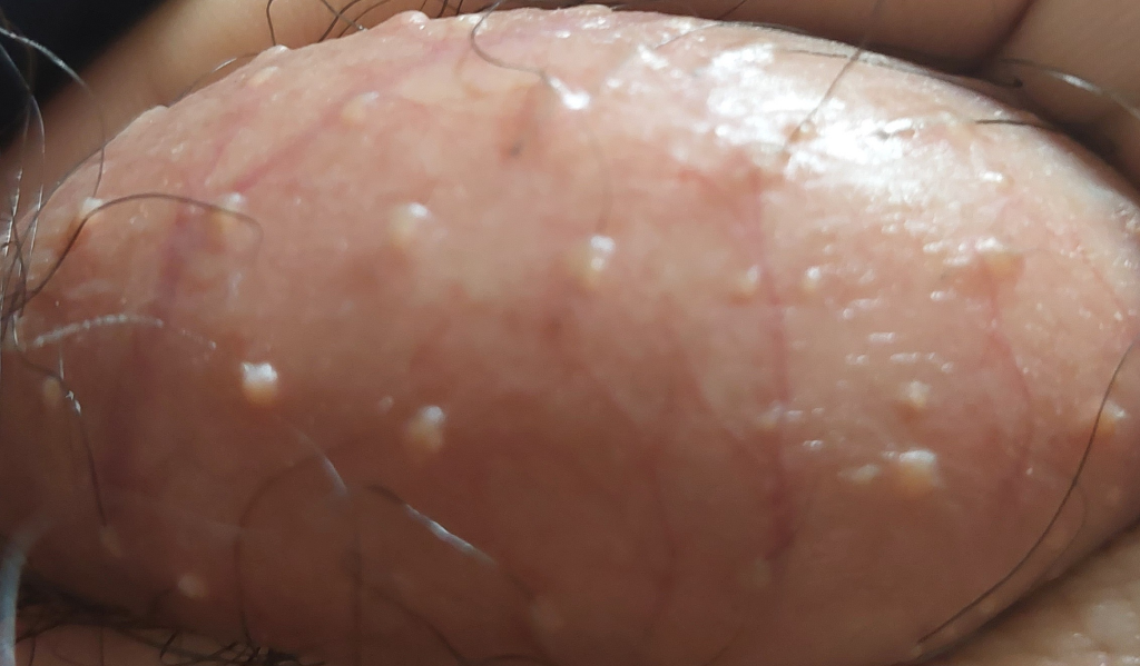 성기의 피지샘 증식이며 피지샘이 도드라지게 보이는 것이며 특별한 이상이 있는 것은 아닙니다