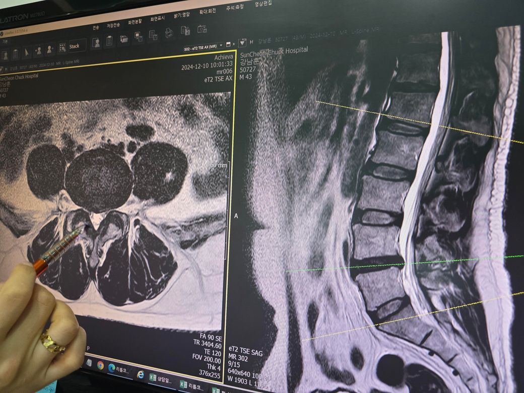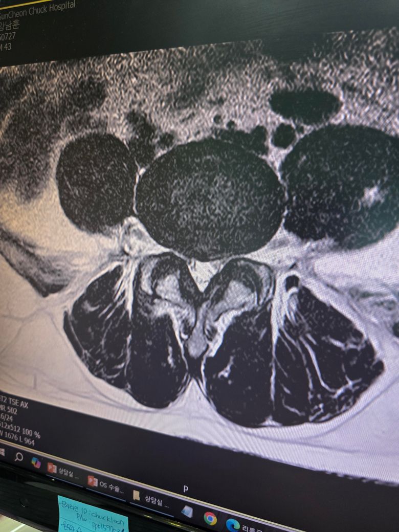 서서 허리를 숙이거나 쪼그려 앉으면 통증 완화가 되긴 한데 허리를 피면 엉덩이에 방사통이 심하네요