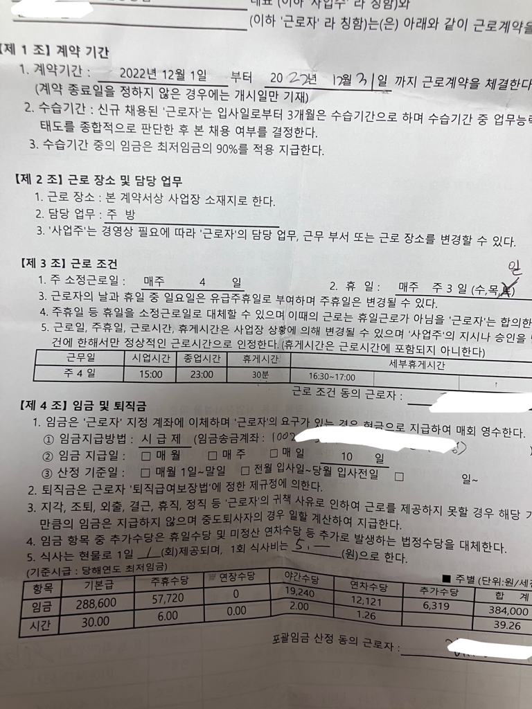 도와주세요 !!근로계약서가 제대로 되어있는지 알려주세요