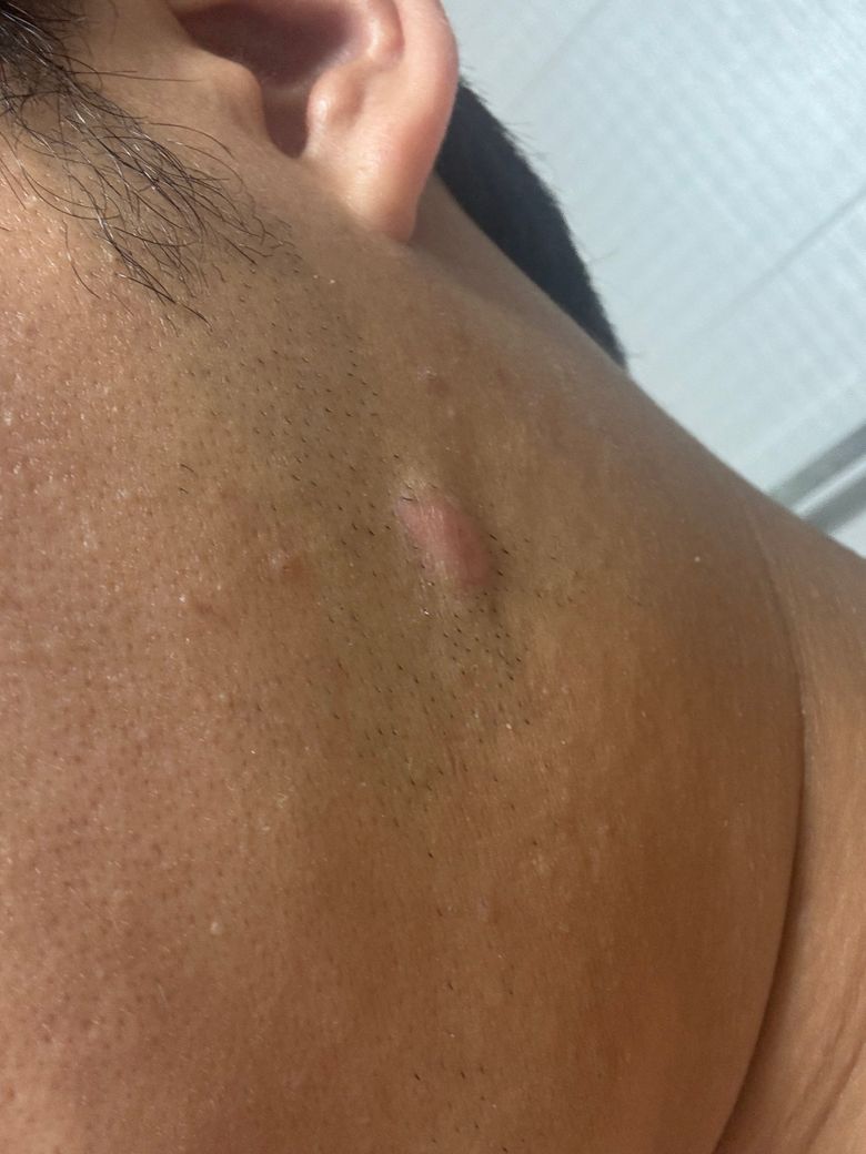 부위는 턱 면도라인 이고 처음에는 핀홀법으로 제거 후 재발해서 절개 후 아예 제거 하여 재수술 하였는데 이거 표피낭종 재발인가요? 아니면 켈로이드 인가요?