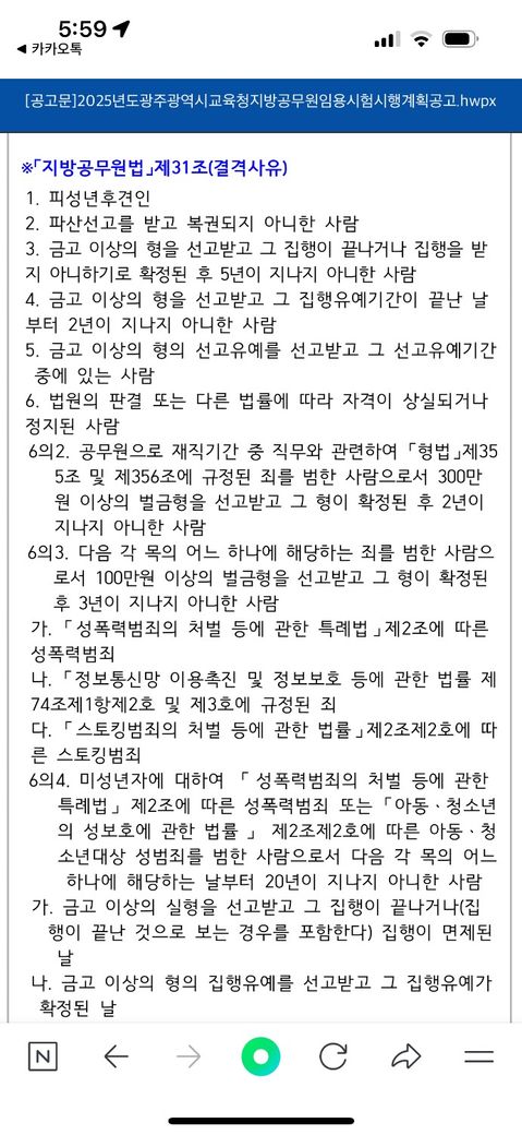 전자통신거래법 위반 벌금형 공무원 결격사유 해당하나요?