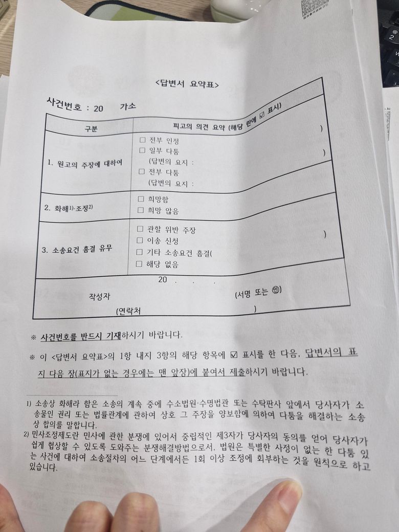 전자소송에서 답변서를 작성하셔서 제출하시면 됩니다. 이상입니다.