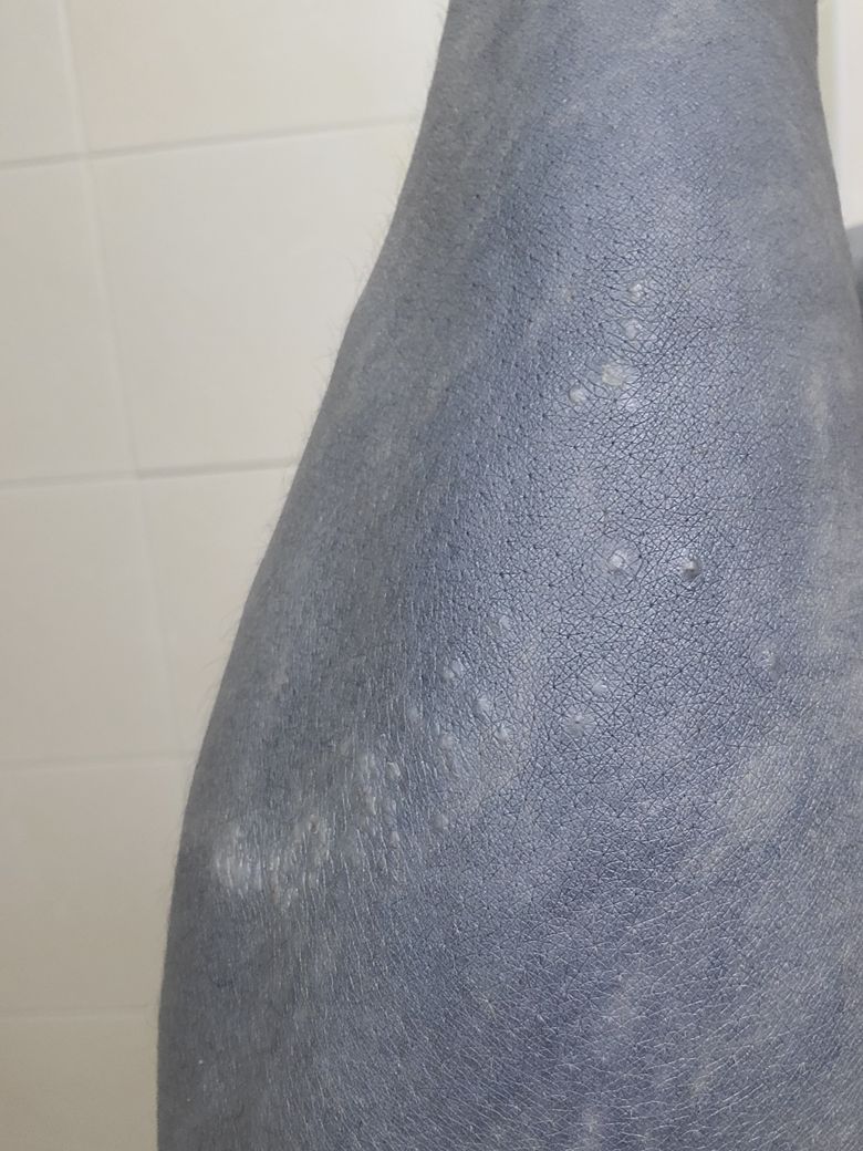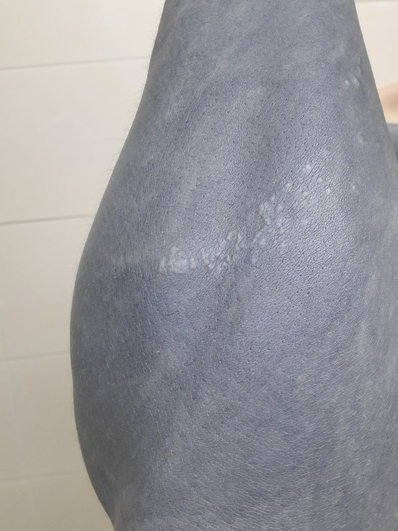조금 건조해지면 하얗게 각질이 생기구요 간지러울때 좀 거칠게 긁으면 피가 조금 납니다