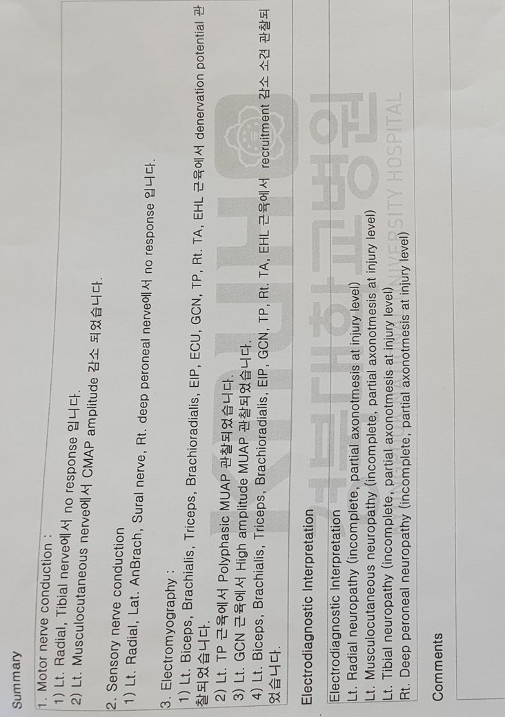 근전도 검사 내용 첨부합니다. 병원에서는 뭐 해줄께 없다고 합니다.