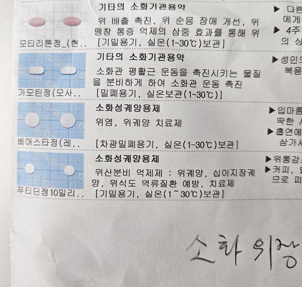 오늘아침 8시쯤에 공복에 첨부 처방한 위장약들 먹었는데여~ 어제 음주를 햇더니 아침에 설사가 나오네여ㅜㅜ 위장약먹고난 후라 몰랏네여ㅠ