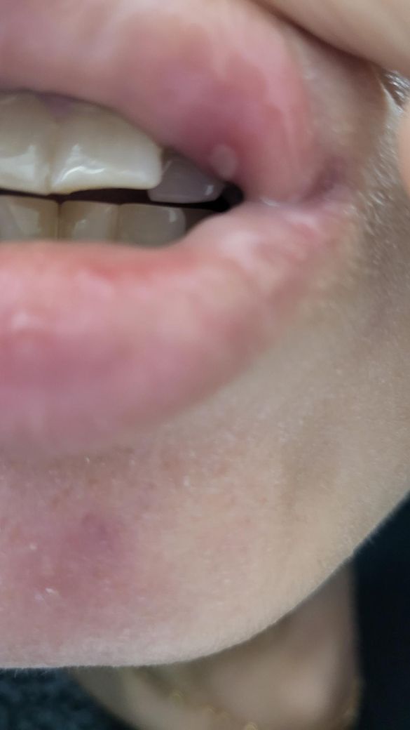 사진상으로는 구내염 소견 보이고 있고 말씀하시는 부분 종합해보면 약간의 감염소견과 주위의 염증소견 동반된 것으로 추정됩니다. 처방받으신 항생제 받으며 경과관찰 잘하시길바라며 증상 심화시에는 스테로이드 연고 등을 적용할 수 있으며 정기적으로 치과 내원하시기를 바랍니다.