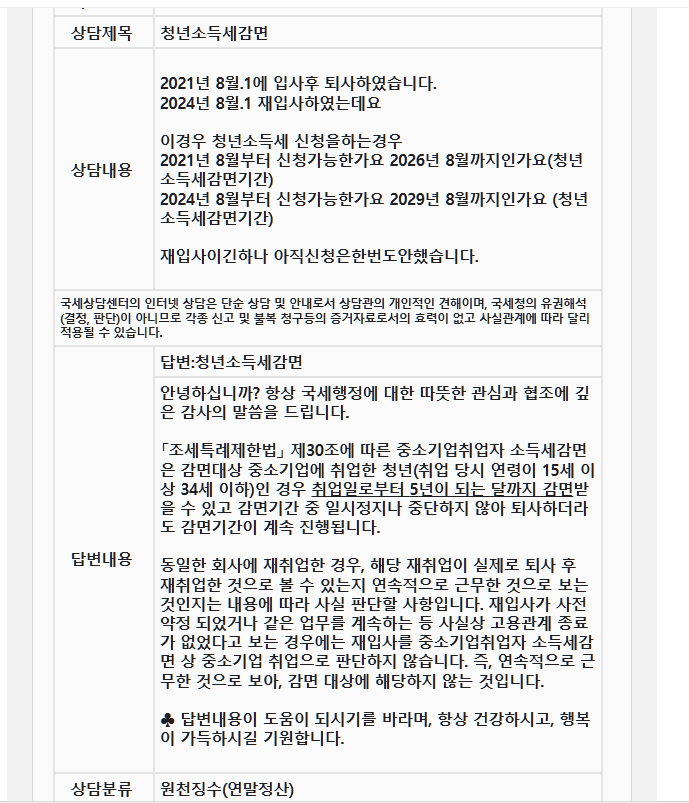 재입사해서 감면을못받는게있나요? 그냥기간을물어본건데..이상해서요