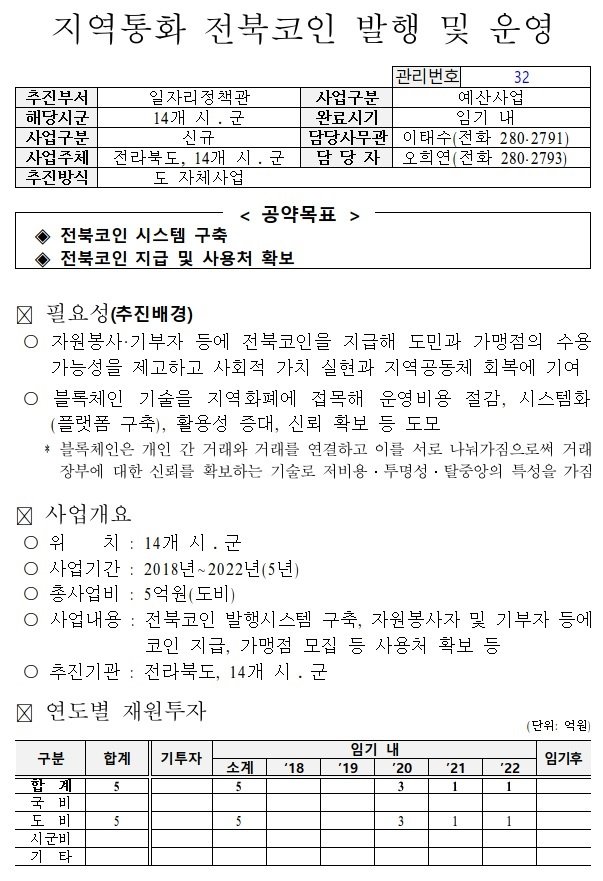 안녕하세요. 전북코인의 추진계획에 대하여 답변드리겠습니다.